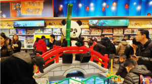 En Beijing, China, la tienda Lego cuenta con un marcado estilo chino, con detalles como aleros similares a los de la Ciudad Prohibida y un panda gigante construido con las inconfundibles fichas de Lego.